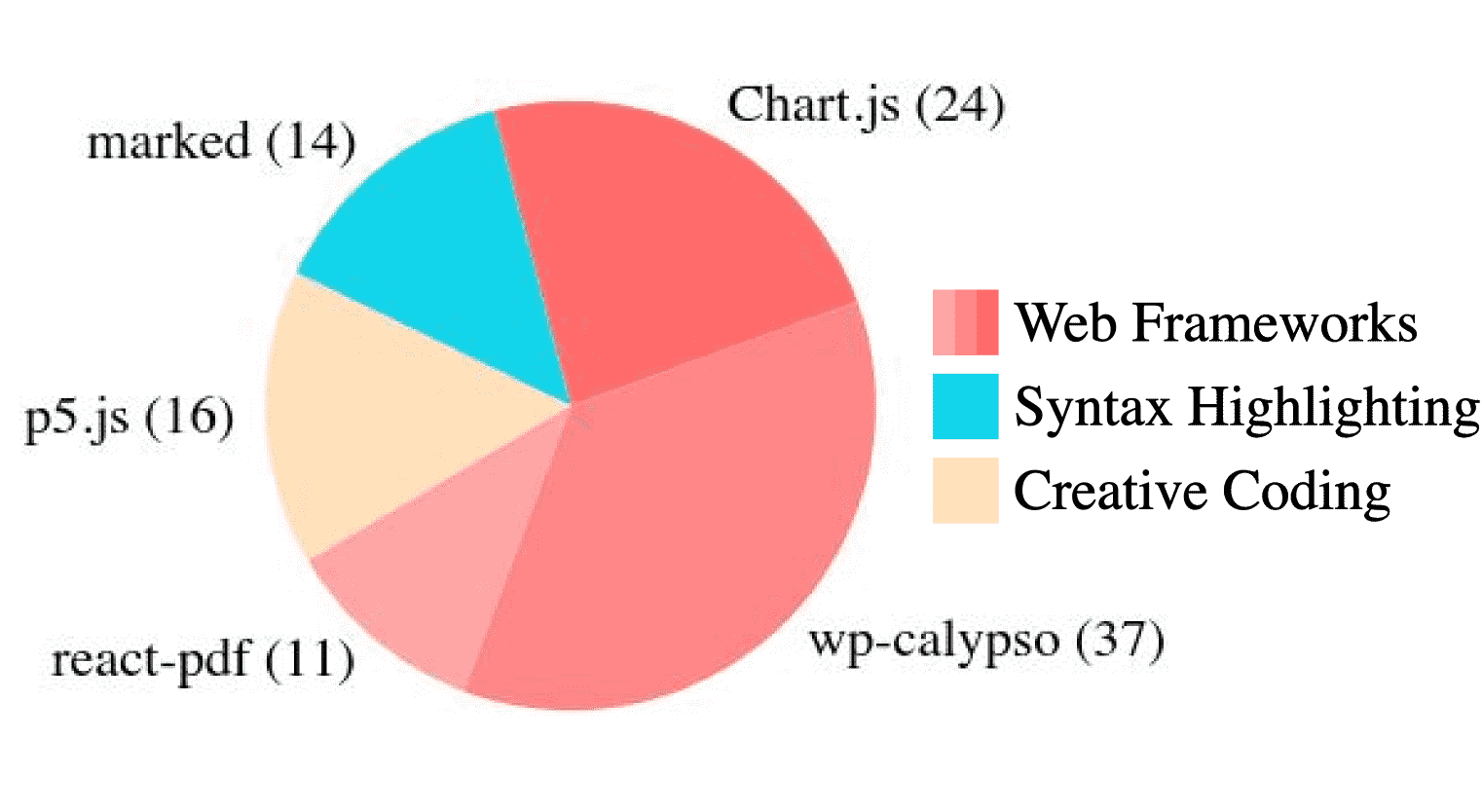 例如,图表多出现在 bpmn-js,数据可视化多在 Chart.js,艺术类图像多在 p5.js。