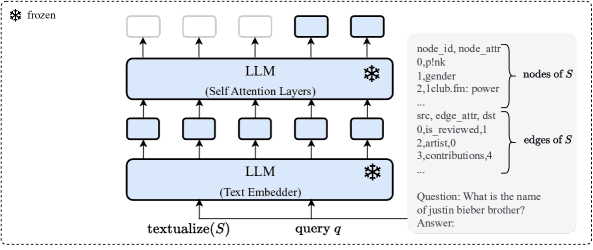基于图的LLM同样存在该问题,因为其无法从单一图嵌入中完整回忆图结构,导致在问答任务中生成错误的节点或边。