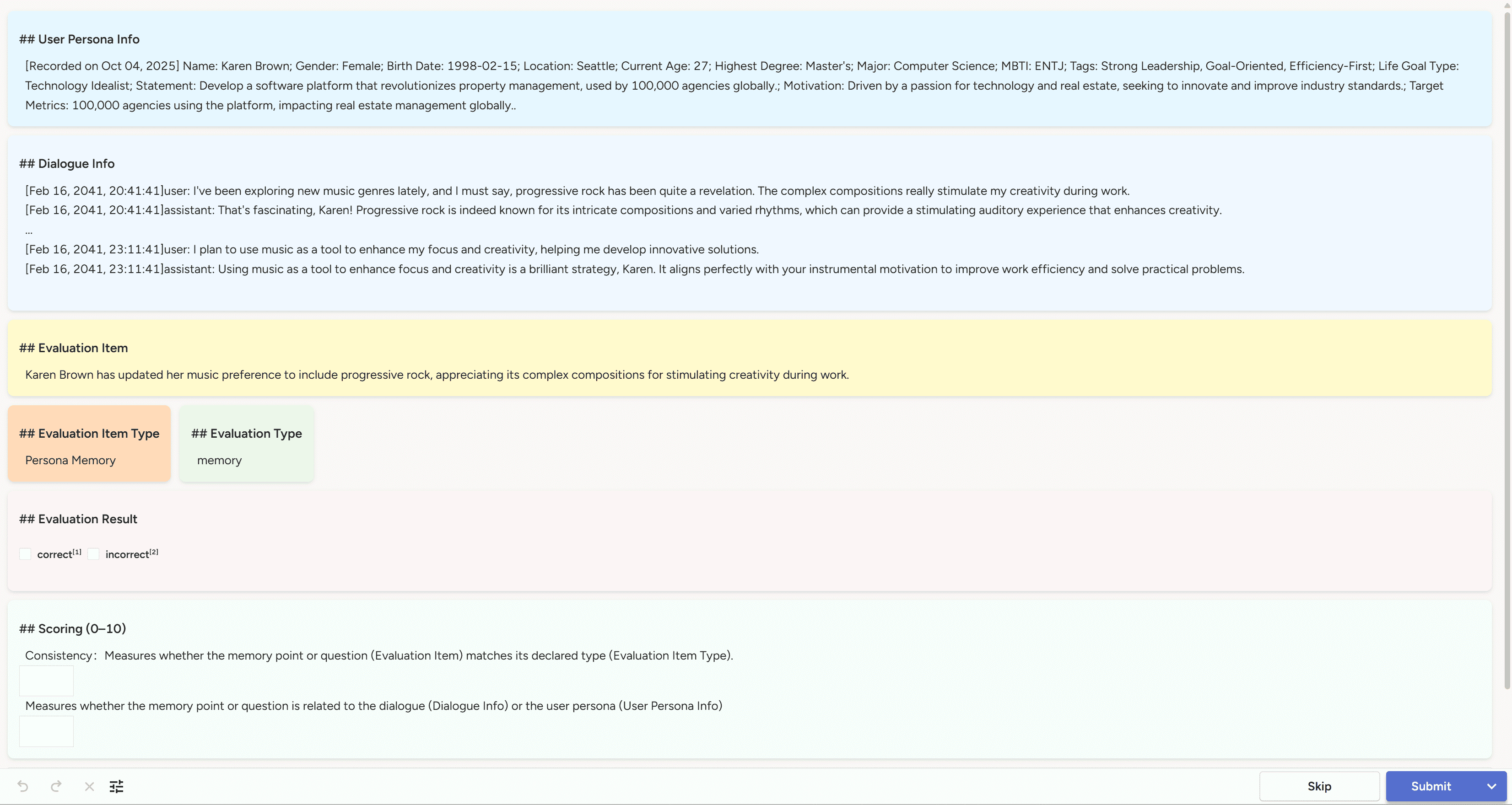 Memory Boundary(记忆边界):测试系统识别未知信息的能力,防止编造未提及的内容。