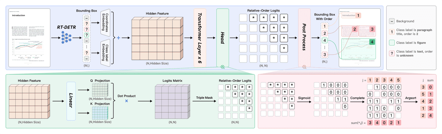 重点内容:模型能够正确识别报告、教材、报纸、杂志、竖排文档等文档的阅读顺序,确保信息的逻辑性和可读性。