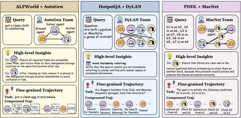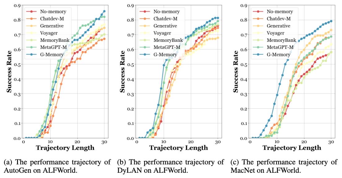 意义:这展示了 G-Memory 能够通过结构化的记忆推理,有效地组织和关联不同智能体的协作经验,从而在面对新问题时能快速找到相关的解决方案。