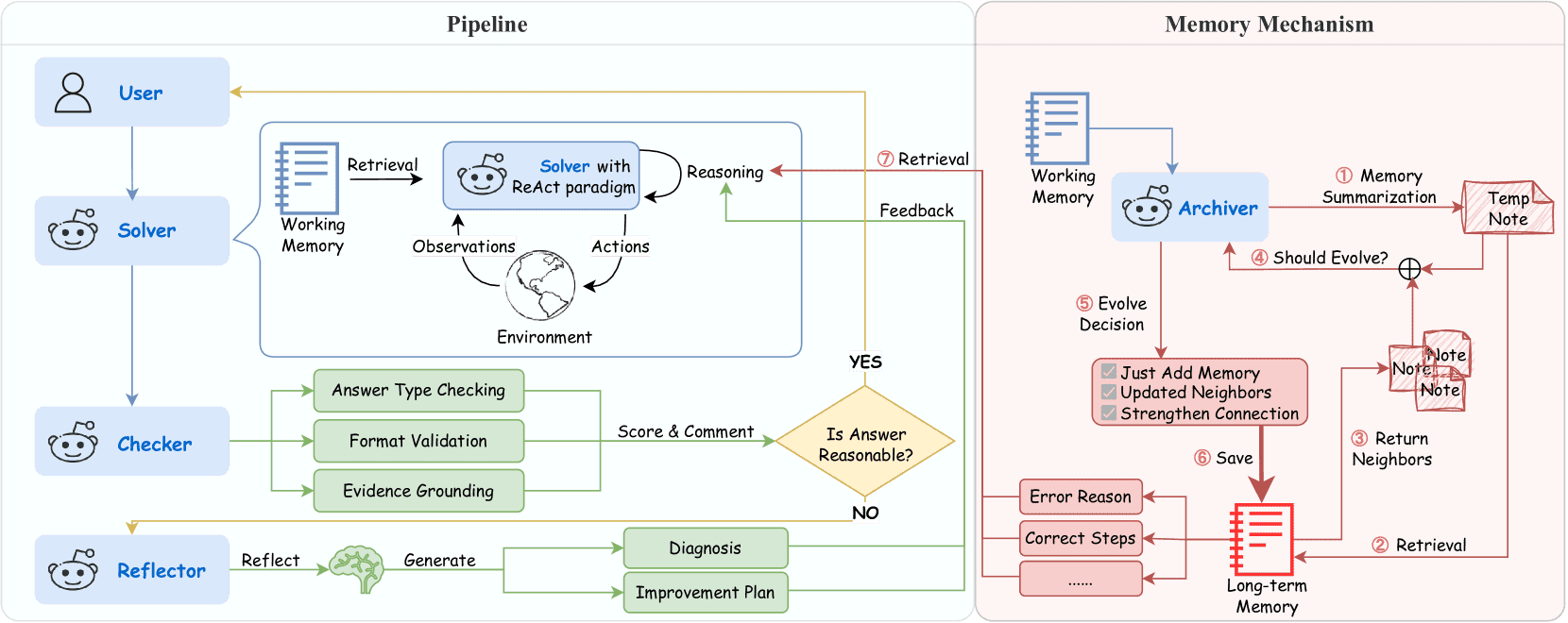 Archiver:管理长期记忆,用于经验的复用与演化,使系统能够不断积累和优化问题解决经验。