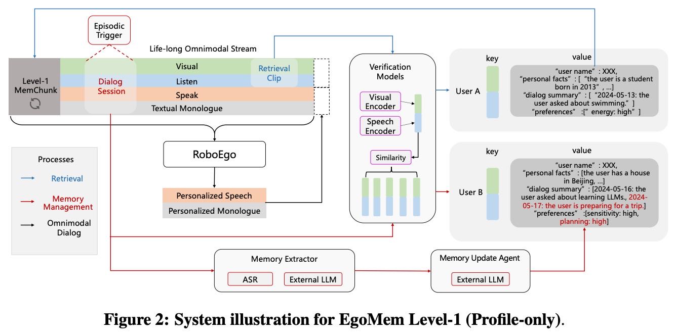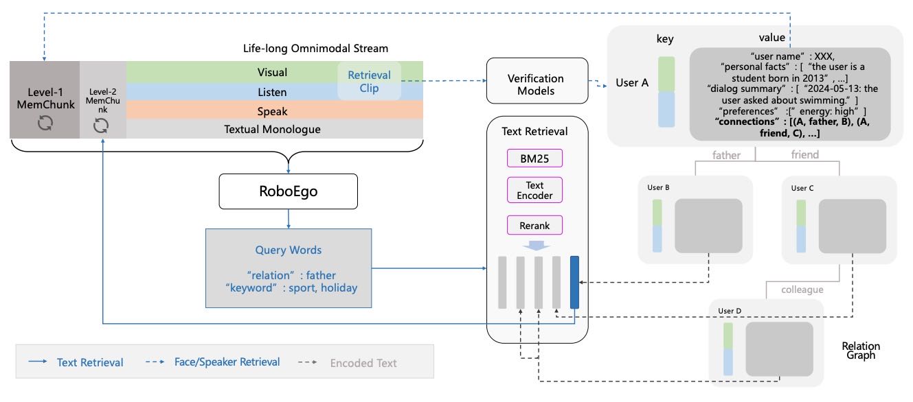 该系统构建在全模态对话代理 RoboEgo 基础之上,实验结果表明,这是首次实现具备稳健终身个性化能力的全模态对话代理,为后续研究奠定了坚实基础。