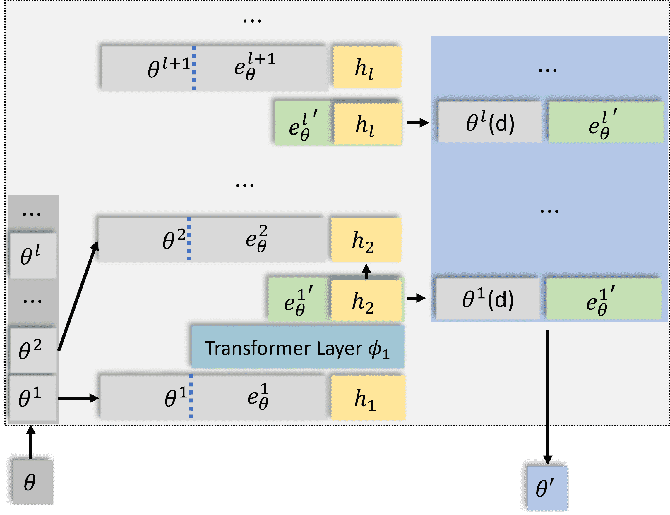 θ:动态参数,表示可更新的“记忆池”,用于存储新知识,并随新知识的引入而更新。