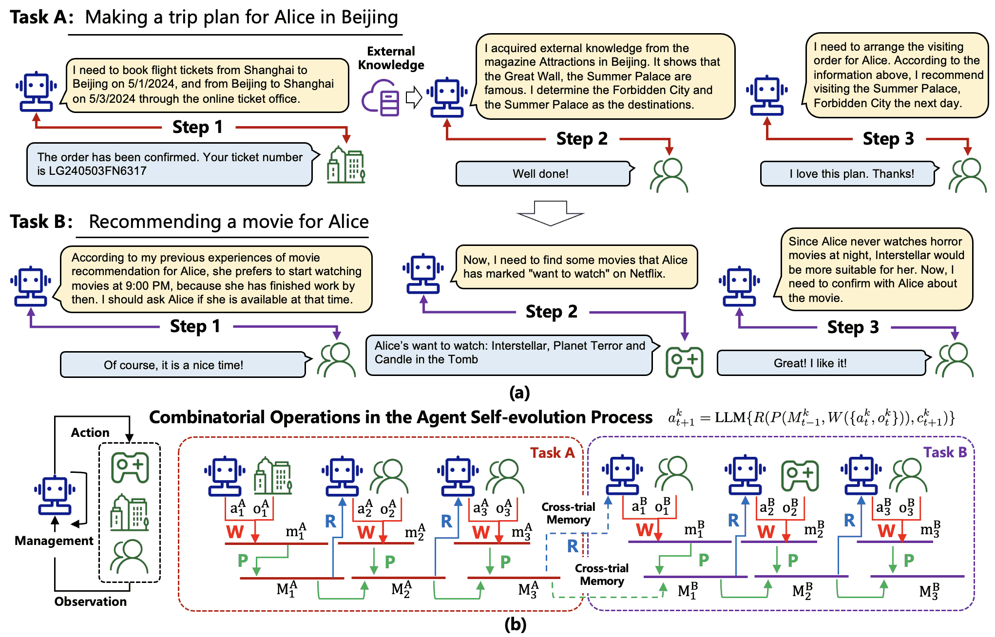 环境探索:智能体需要通过探索环境并学习反馈来进化。记忆可以帮助它决定何时、如何进行探索(例如,优先探索失败过的或探索频率较低的行为)