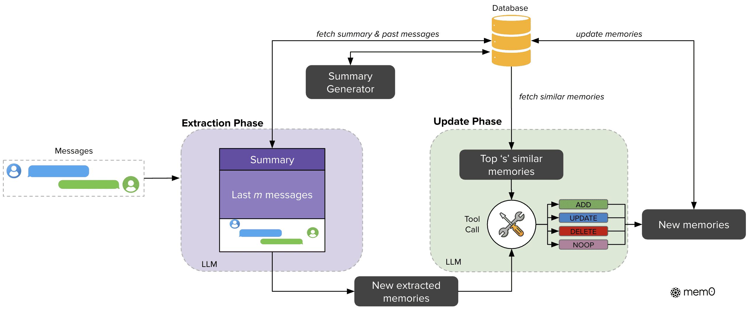 为解决上述问题,本文提出Mem0,一种新的记忆架构,旨在让AI代理能够动态捕捉、组织并检索重要信息,实现长期连贯对话。