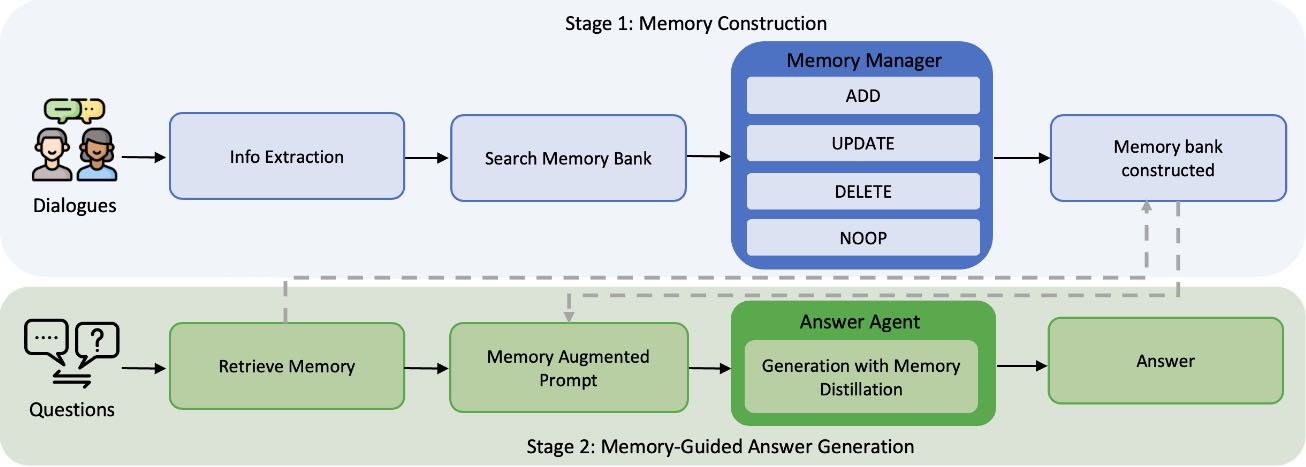 Memory Manager(记忆管理器):学习结构化的记忆操作,包括ADD(添加)、UPDATE(更新)、DELETE(删除)和NOOP(无操作)。