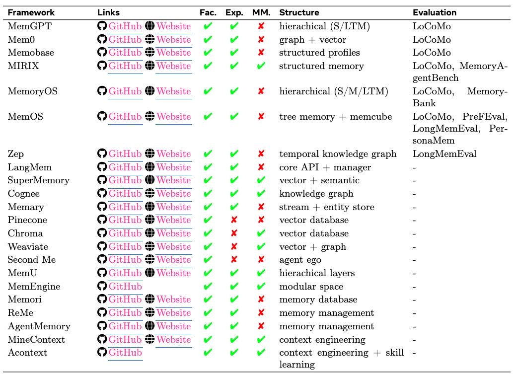 一套把“Agent 记忆”从具体实现中解放出来的时间—算子抽象框架,短期与长期记忆不是结构划分,而是形成、演化、检索在时间维度上的使用方式 2.3 Comparing Agent Memory with Other Key Concepts